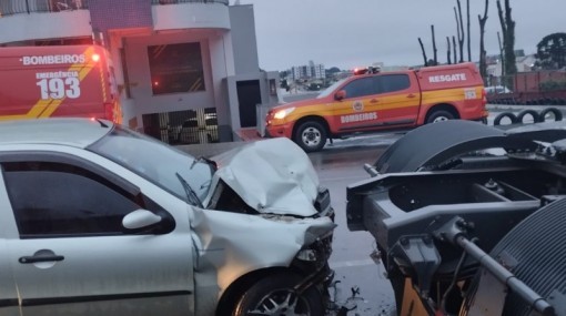 Na manhã deste domingo (14), por volta 07h04min ocorreu uma colisão entre um veículo com placas de Curitibanos e um caminhão com placas de Araçatuba-SP em Curit...