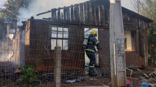O Corpo de Bombeiros atendeu a um incêndio em uma residência de 50 metros quadrados no bairro Faxinal dos Carvalhos no interior do município de Fraiburgo, na m...
