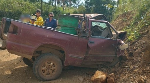 Nesta manhã de segunda-feira (04) ocorreu uma saída de pista seguida de colisão de uma caminhonete S10 com placas de Brunópolis-SC em um barranco na BR-470 em C...