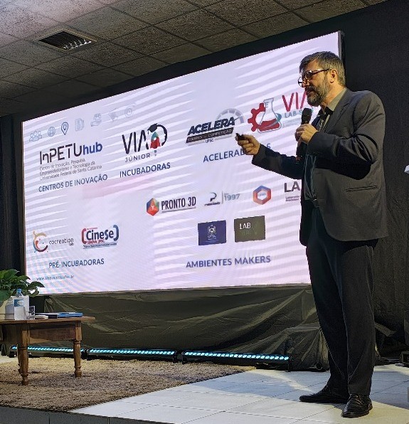 No dia 25 de setembro, a programação contou com a presença do professor Jacques Mick, Pró-Reitor de Pesquisa e Inovação da UFSC, que abordou os desafios e oportunidades do atual cenário de inovação e ressaltou a importância das universidades como pilares no processo de desenvolvimento regional.