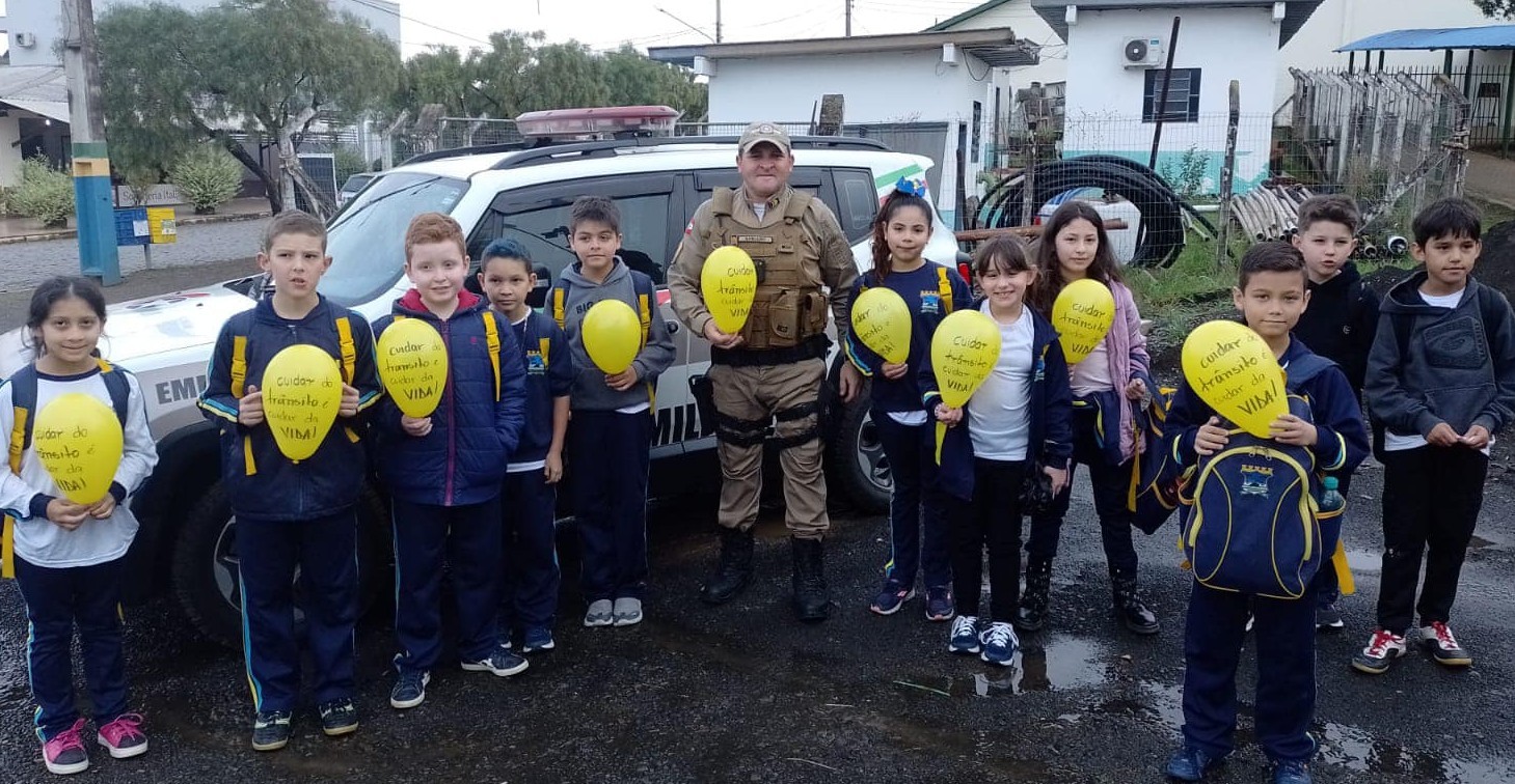 Nesta ação, os alunos entregaram um balão com a frase "Cuidar do Trânsito é Cuidar da Vida", para os munícipes.