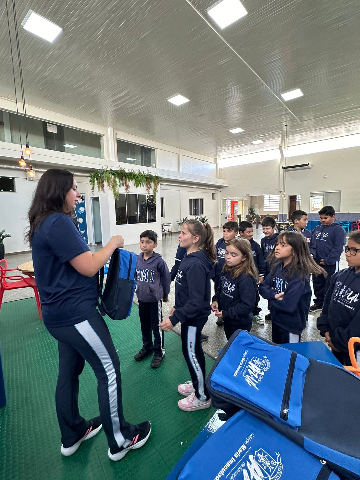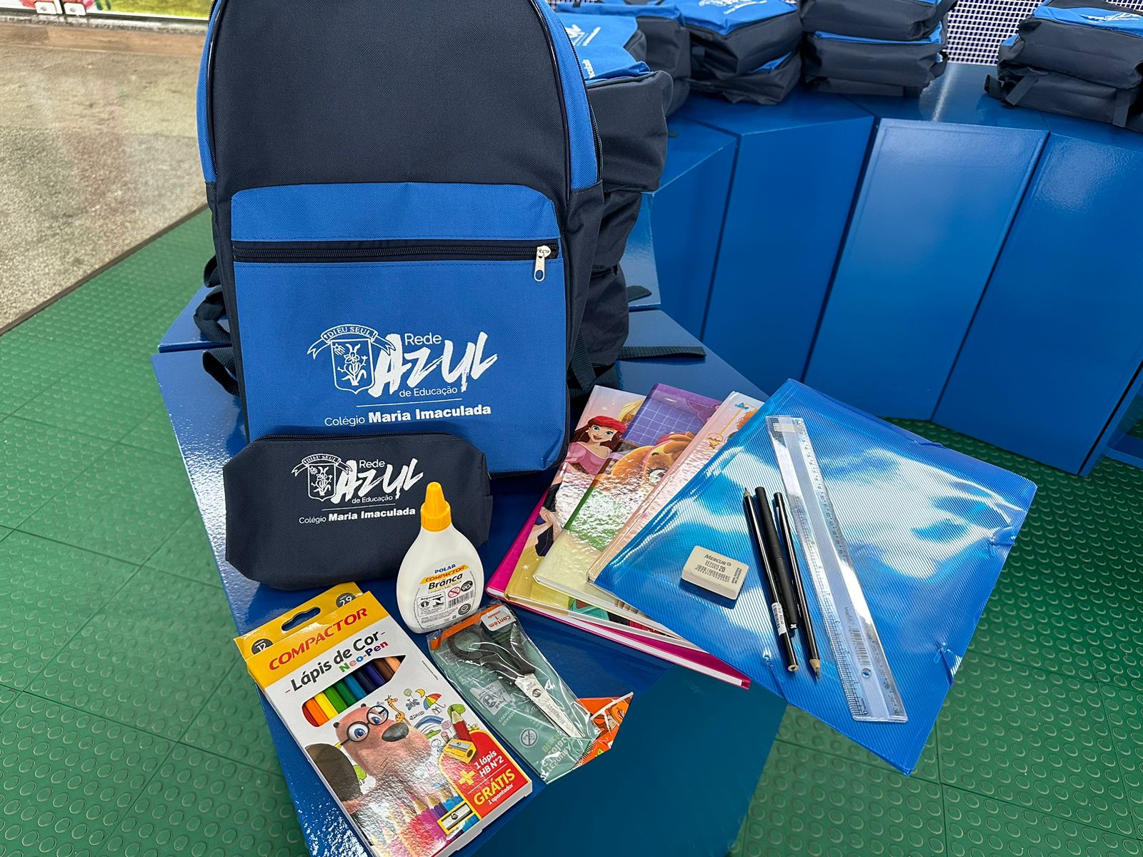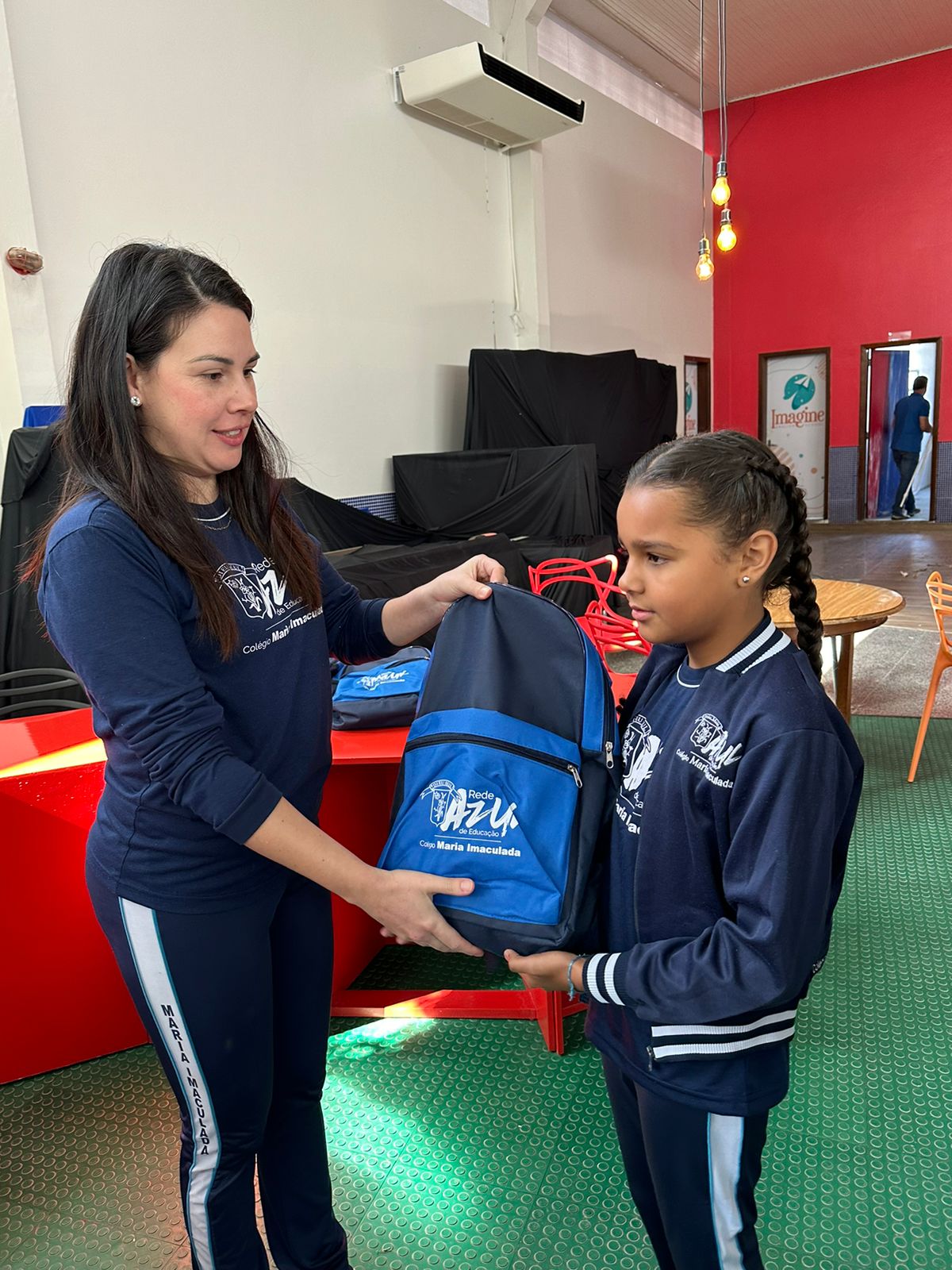 Os alunos do Projeto Social do Colégio Maria Imaculada receberam gratuitamente no início das aulas de 2024 uniforme, mochila, material escolar e livros didáticos.
