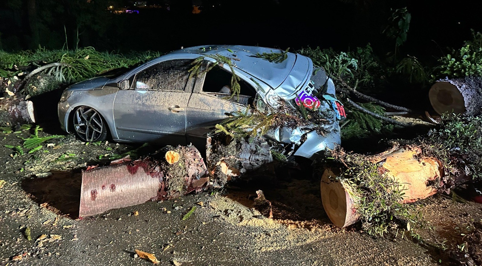 Conforme os bombeiros, no veículo não tinha nenhuma pessoa e o local foi isolado para afastar as pessoas dos fios elétricos caídos sobre a via até a chegada da Celesc, sendo iniciado o corte e a remoção da árvore, retirando-a de cima do automóvel e removendo os galhos e troncos que estavam obstruindo a passagem.