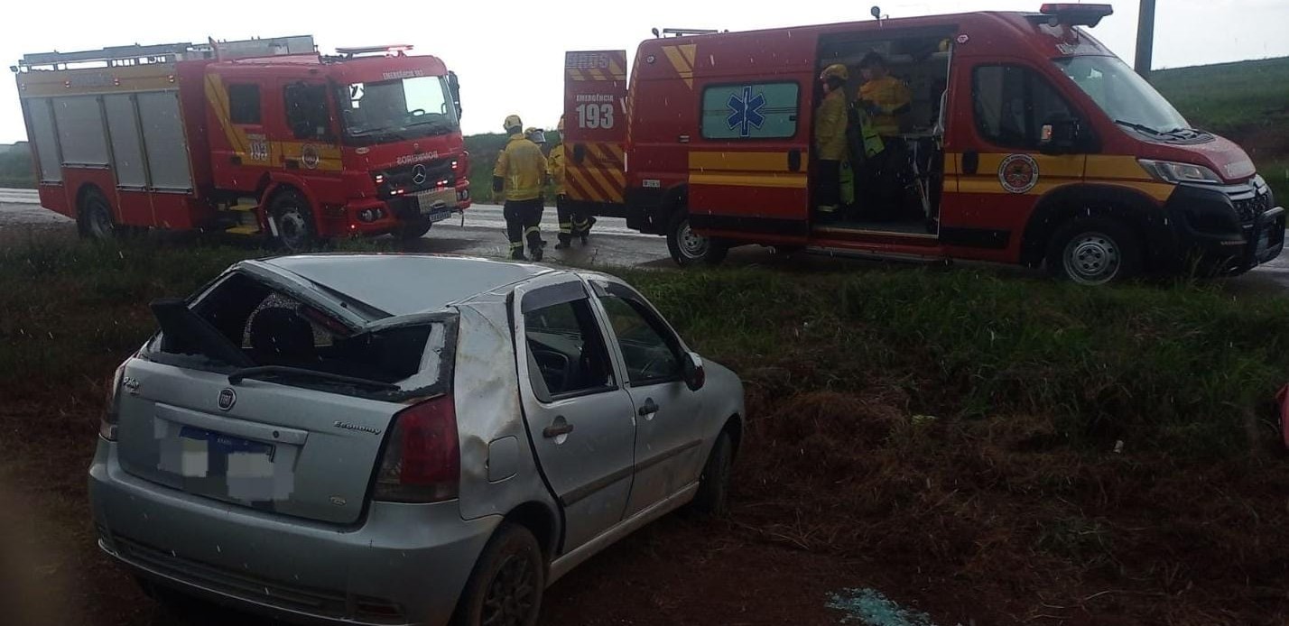 Na manhã desta terça-feira (19), o Corpo de Bombeiros atendeu a uma saída de pista seguida de capotamento de um veículo na BR-470 em Campos Novos.