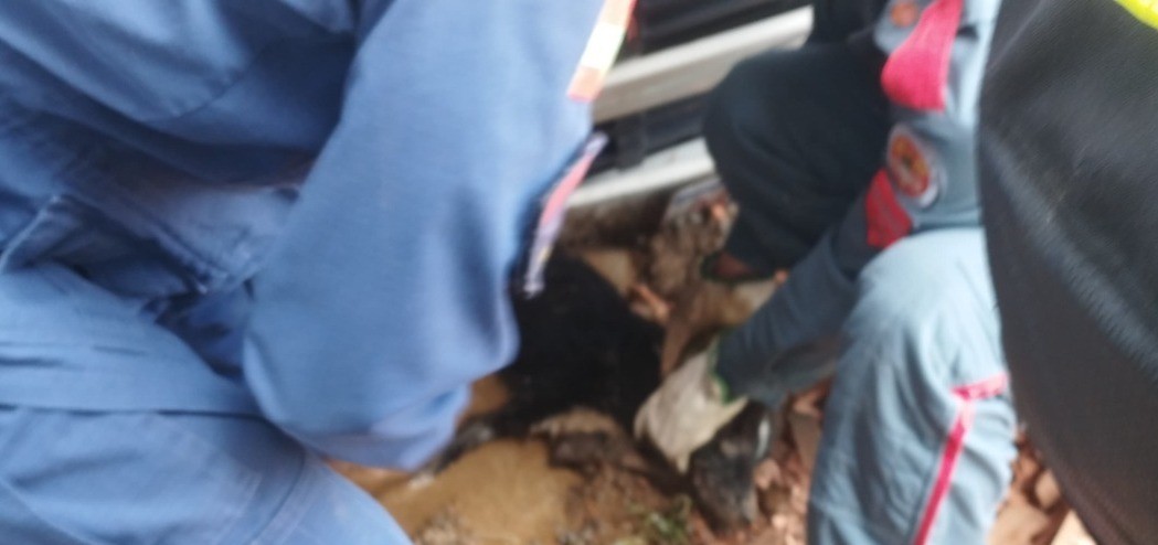 De acordo com os bombeiros de imediato foi realizado o resgate do animal, sendo foi escavando no entorno do local para liberar o animal, que apresentava fratura nas patas traseiras. Após resgate, o animal ficou aos cuidados do proprietário.