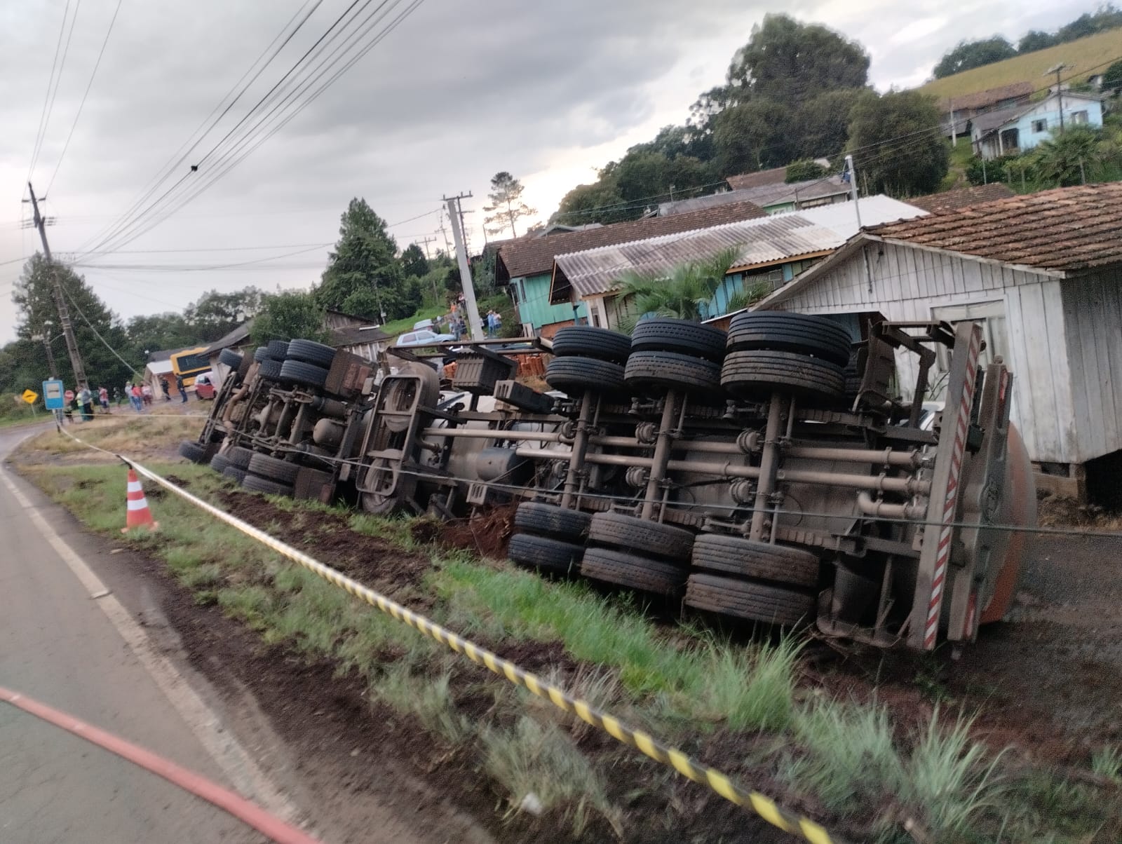 Tombamento aconteceu em frente residências e não houve feridos. Foto: Corpo de Bombeiros Militar de Lebon Régis.