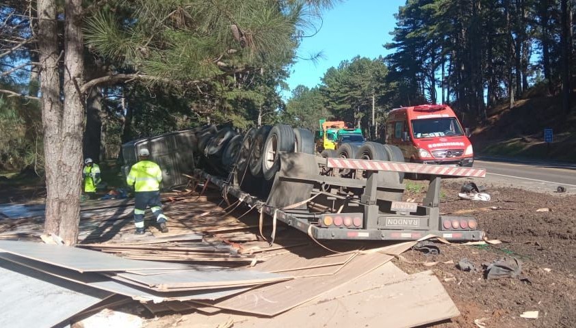 Na manhã deste domingo (30), ocorreu na BR-116 no KM 165 próximo ao município de Ponte Alta do Norte uma saída de pista com tombamento de uma carreta.