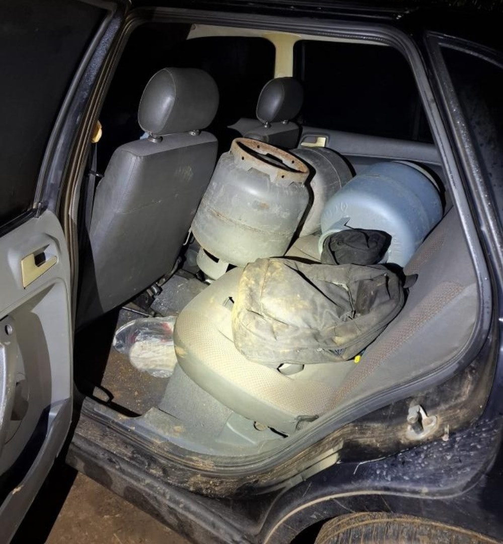 No interior do veículo, os policiais militares encontraram seis botijões de gás, um rolo de arame farpado e uma pequena quantidade de maconha. O dono do automóvel afirmou que nenhum dos itens lhe pertencia. A suspeita é de que o material tenha sido furtado de propriedades vizinhas.