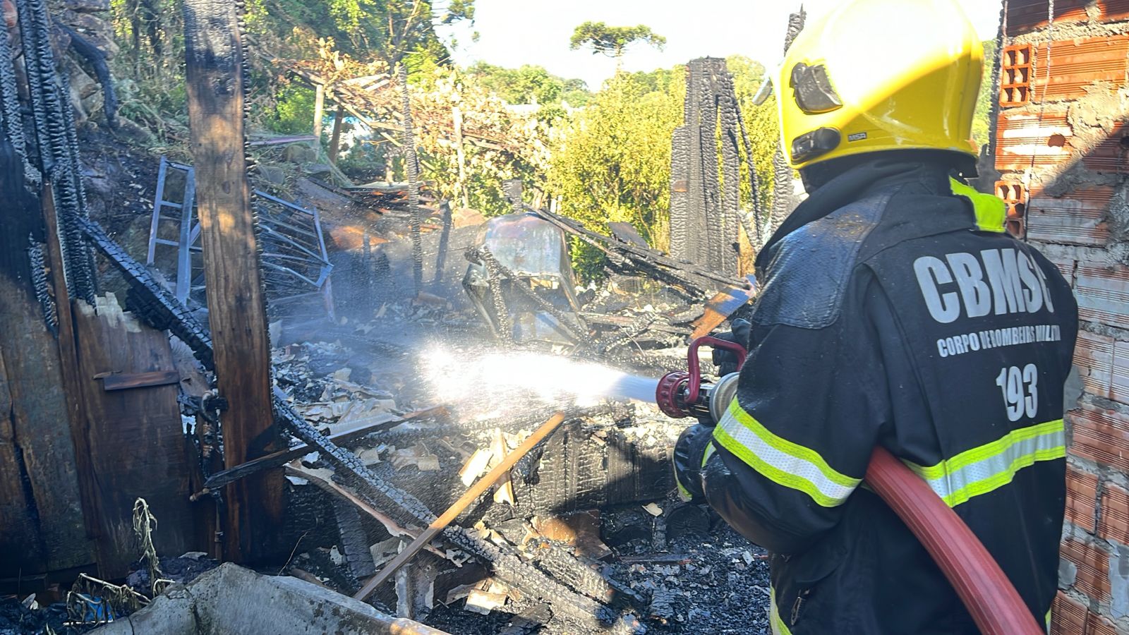 Quando os bombeiros chegaram ao local, a casa de 25 metros quadrados já estava completamente tomada pelo fogo. De imediato iniciaram o combate às chamas utilizando aproximadamente 2 mil litros de água, foram cerca de 15 minutos para pagar completamente o incêndio.