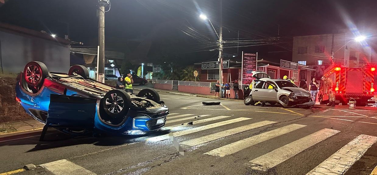 Na noite desta quinta-feira (09), o Corpo de Bombeiros atendeu a uma colisão seguida de capotamento entre os veículos Tracker e um Ford Ka em Fraiburgo.