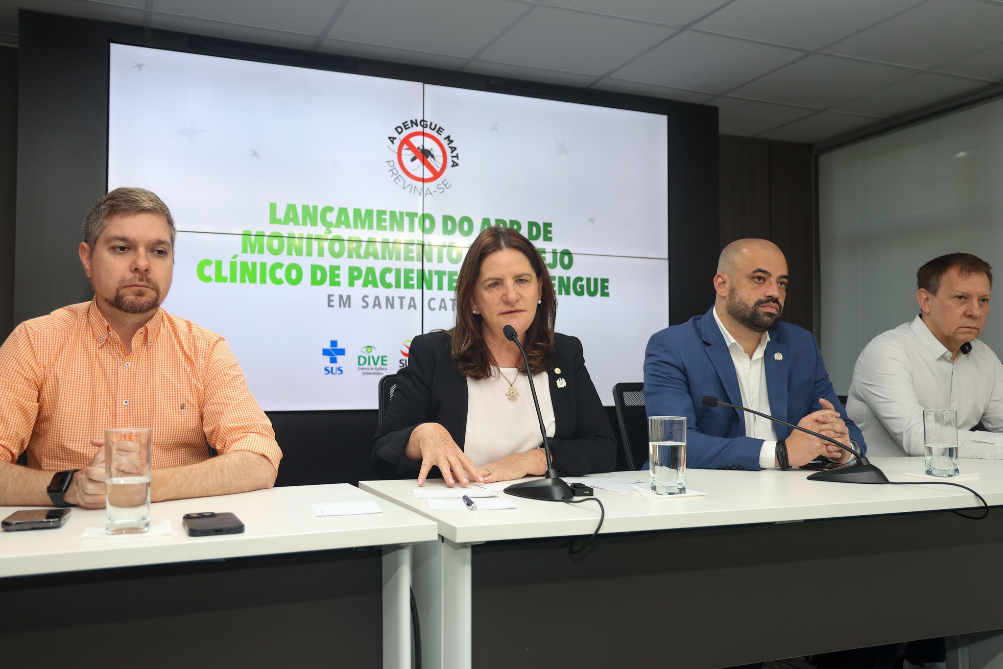 A partir de agora, Santa Catarina passa a contar com mais uma estratégia para ajudar a reduzir a gravidade dos pacientes com dengue que chegam à rede de saúde. O lançamento do aplicativo Protocolo Dengue, desenvolvido pela Secretaria de Estado da Saúde do Rio de Janeiro e compartilhado com os estados do Consórcio de Integração Sul e Sudeste (Cosud), aconteceu na quarta-feira, 27, na sede da Defesa Civil estadual. O objetivo da plataforma para manejo clínico de casos é dar agilidade e suporte aos profissionais de saúde.