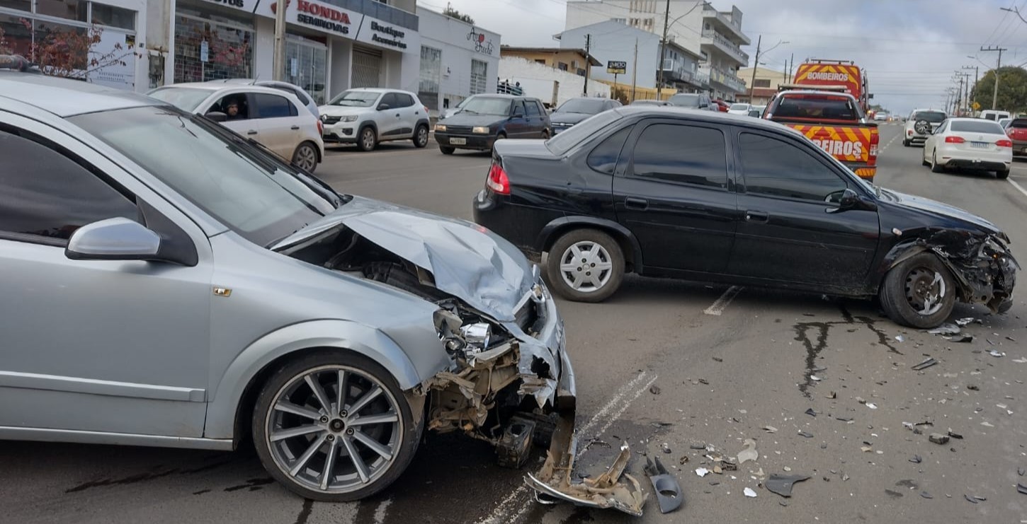 O Corpo de Bombeiros atendeu a uma colisão lateral entre dois veículos na Avenida Leoberto Leal próximo ao Restaurante Universitário em Curitibanos.