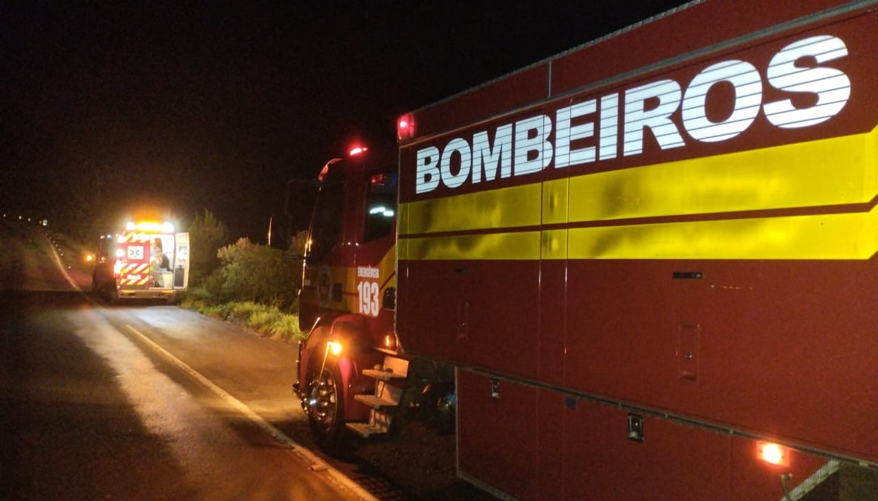 Motorista e o carona foram atendidos e encaminhados ao hospital. Foto: Corpo de Bombeiros Militar de Lebon Régis.