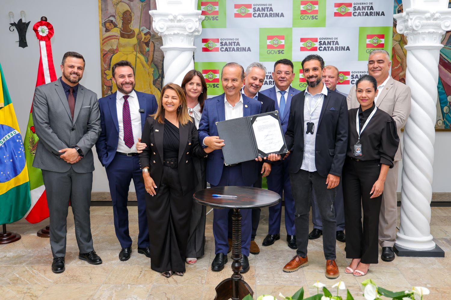 O governador Jorginho Mello entregou a Ordem de Serviço para obras que irão melhorar a infraestrutura do Aeroporto Regional da Serra Catarinense, em Correia Pinto. Serão investidos R$ 2,8 milhões nas reformas e ampliação do terminal de passageiros, da seção contra incêndio e implantação do ponto de controle de acesso à área restrita do Aeroporto. A assinatura foi realizada nesta terça-feira, 18, em Florianópolis, com a presença da prefeita Lucia Ortiz, do secretário de Portos, Aeroportos e Ferrovias (SPAF), Beto Martins, e lideranças regionais.
