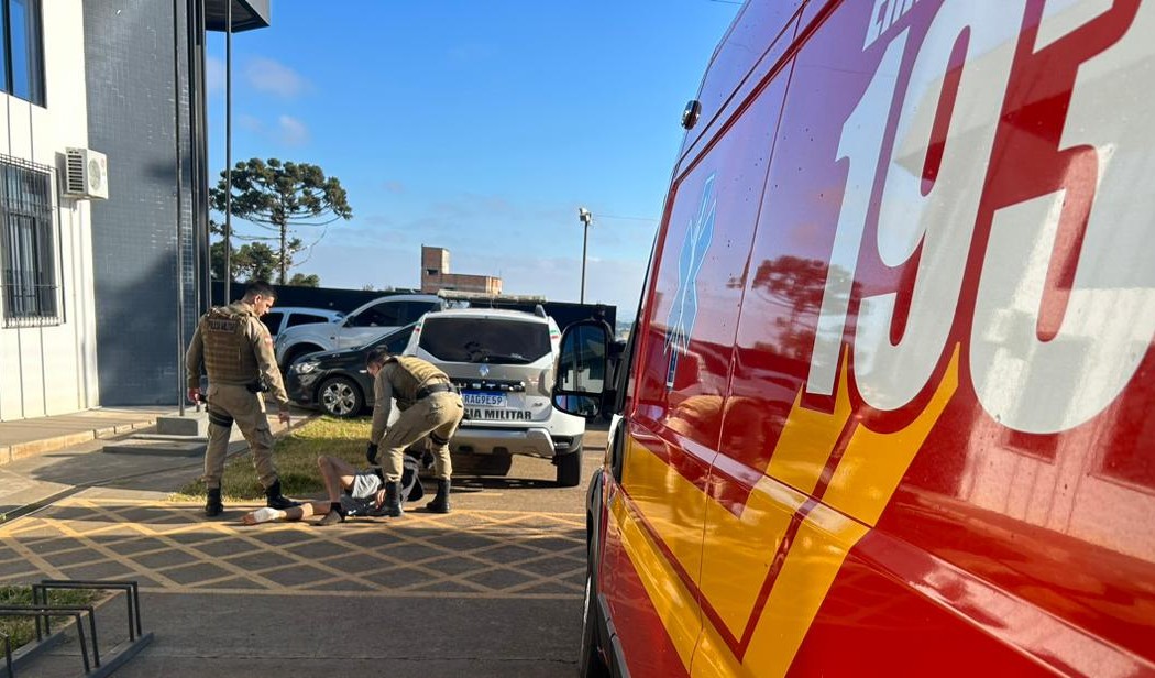 Homem de 25 anos foi a alvejado com um tiro no pé direito e encaminhado ao hospital. Foto: Corpo de Bombeiros Militar de Campos Novos.