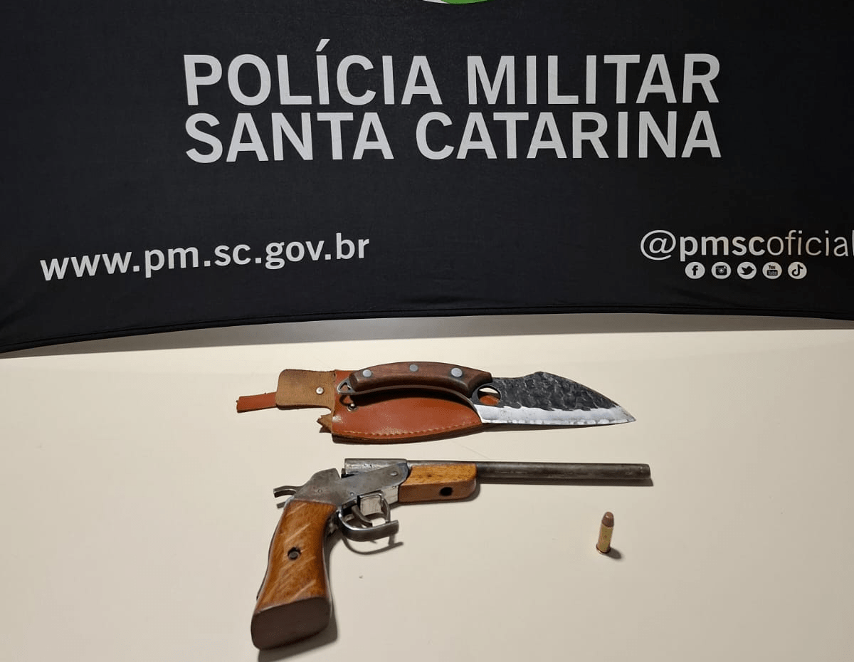 Um homem foi preso na última semana no bairro Guilherme Rauen no município de Santa Cecília, após efetuar um disparo de arma de fogo em via pública e por porte ilegal de arma de fogo, nas proximidades de um bar. A ação rápida da Polícia Militar resultou na apreensão de um revólver calibre .38 e de uma arma branca, além da prisão em flagrante do suspeito.