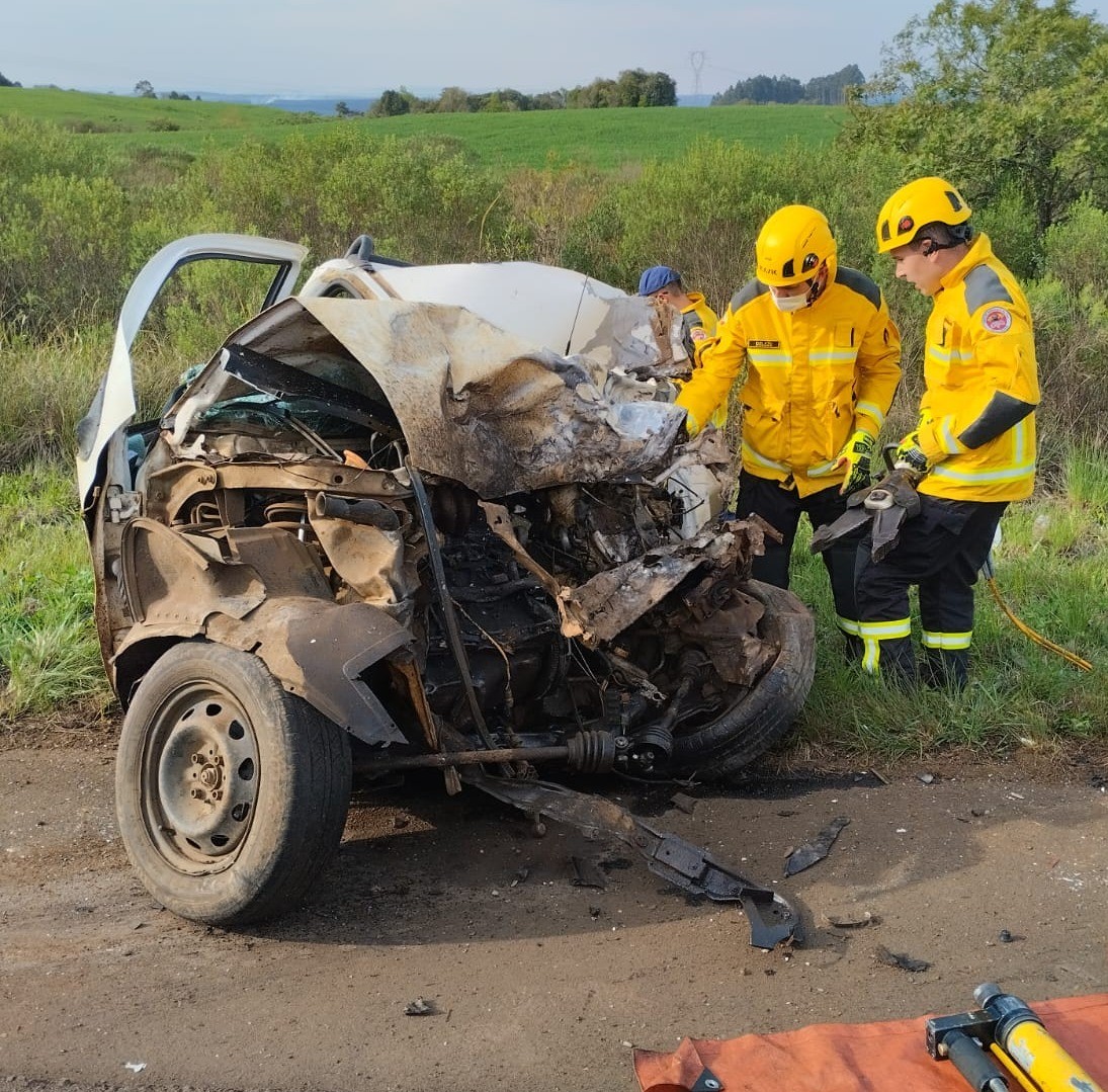 Homem de 60 anos era o motorista do veículo e veio a óbito no local. Foto: Corpo de Bombeiros Militar de Curitibanos.