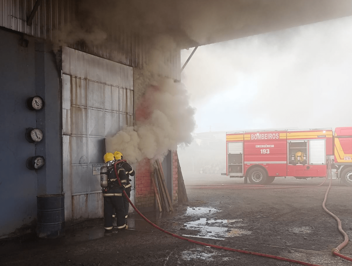 No início da tarde deste sábado (07), ocorreu um incêndio em uma estufa onde é realizada a secagem da madeira em uma empresa de móveis no município de Santa Cecília.