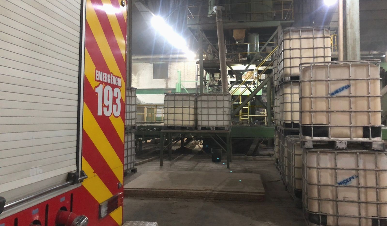 De acordo com os bombeiros, o incêndio estava ocorrendo no interior de um silo onde passava a serragem e a brigada de incêndio da empresa já trabalhava no local, no resfriamento, na retirada do material e no combate às chamas.