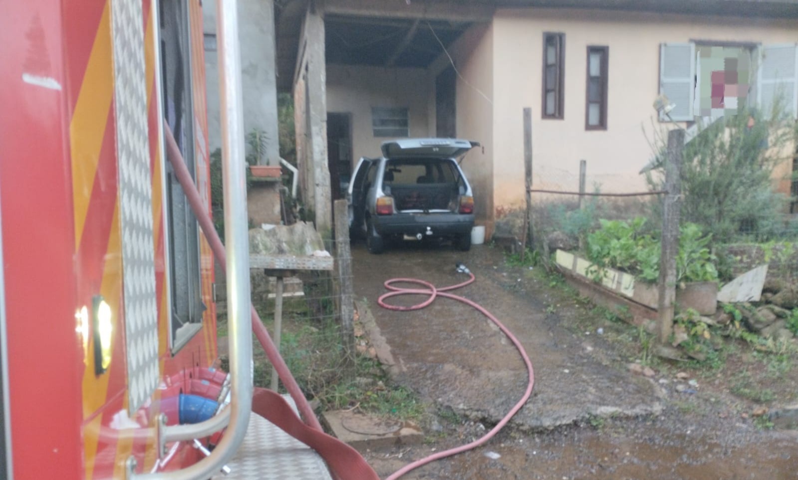 De acordo com os bombeiros no local o automóvel foi atingindo pelo fogo e estava na garagem da residência, sendo utilizado para combater o fogo aproximadamente 200 litros de água para que o incêndio não se propagasse para a residência.