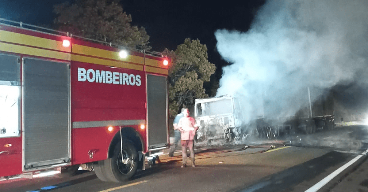 De acordo com os bombeiros, a carreta Bitrem com placas Mercosul estava totalmente tomada pelas chamas e tinha como motorista um homem de 46 anos que não se feriu.