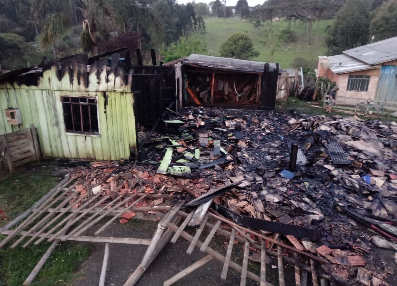 A casa estava desocupada, sendo usada para depósito de papelão para reciclagem. Foto: Corpo de Bombeiros Militar de Santa Cecília.
