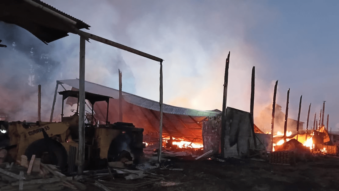 Devido à intensidade das chamas, foi necessário apoio dos bombeiros de Santa Cecília, e de Monte Carlo. No local havia dois barracões sendo uma fábrica com 420 metros quadrados, um depósito de aproximadamente 730 metros quadrados bem como todos os seus maquinários, um veículo Kombi, uma empilhadeira, uma pá carregadeira e um grande estoque de madeira que estava de dentro dos barracões, tudo destruído pelas chamas e também parte da estrutura de uma estufa de secagem de madeira.