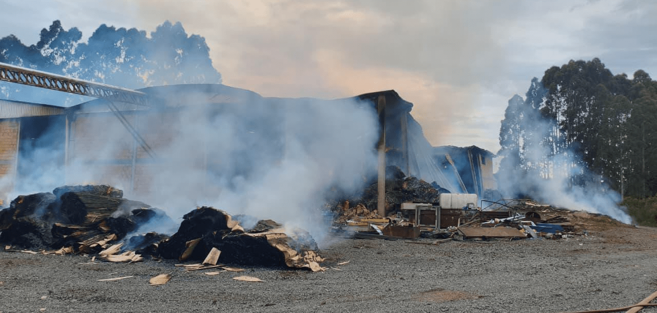 Conforme os registros dos bombeiros, para o combate ao fogo foi priorizando a proteção das estruturas vizinhas, devido à grande proporção do incêndio, foi necessário o apoio dos bobmeiros de Santa Cecília. O incêndio consumiu totalmente um barracão com cerca de 2.250 metros quadrados. No interior do imóvel havia grande quantidade de lâminas para compensado, além de duas empilhadeiras e um veículo Saveiro, todos completamente destruídos pelas chamas.