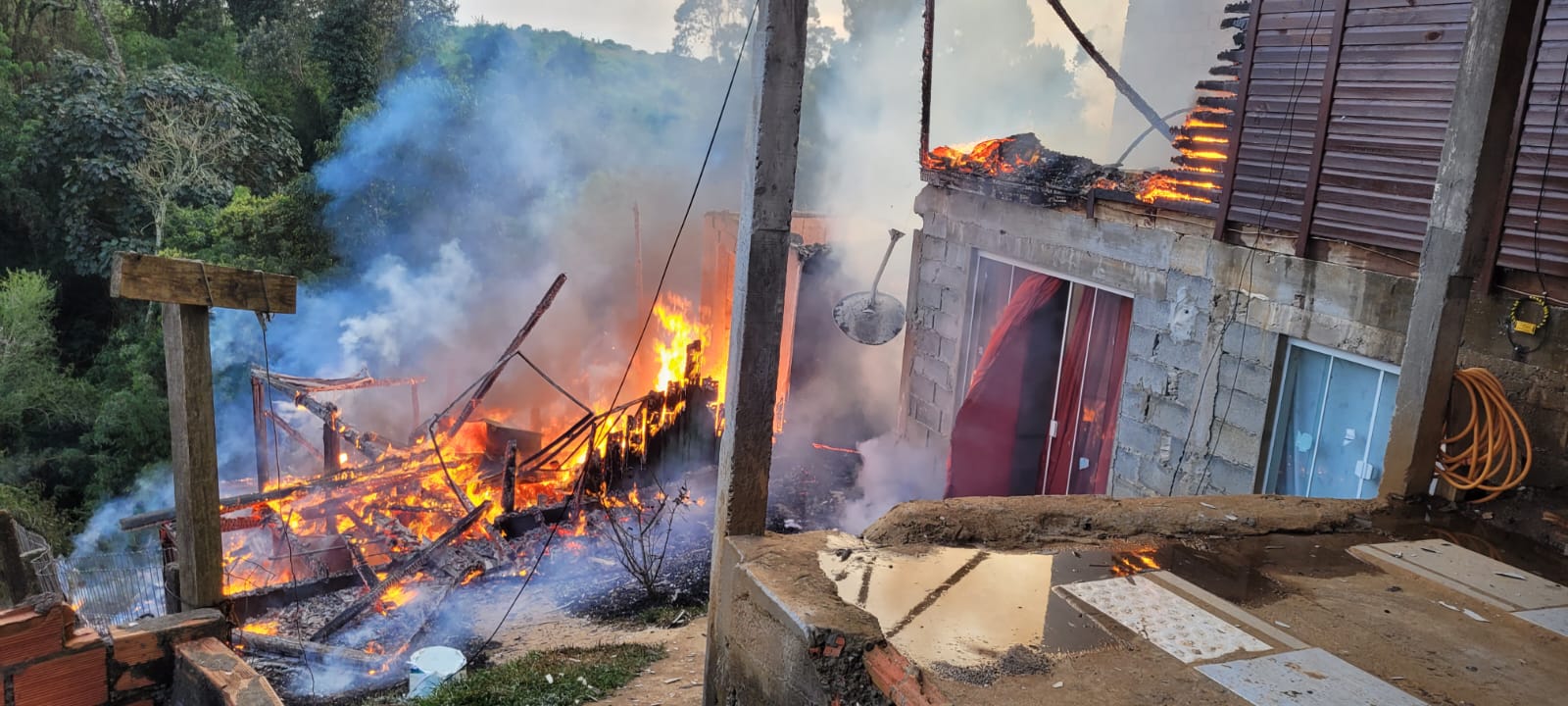 O Corpo de Bombeiros atendeu a um incêndio em três residências em Fraiburgo.