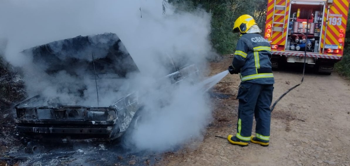 Na tarde desta terça-feira (11), o Corpo de Bombeiros atendeu um incêndio em um veículo Saveiro no bairro Taquaruçu no interior do município de Fraiburgo.