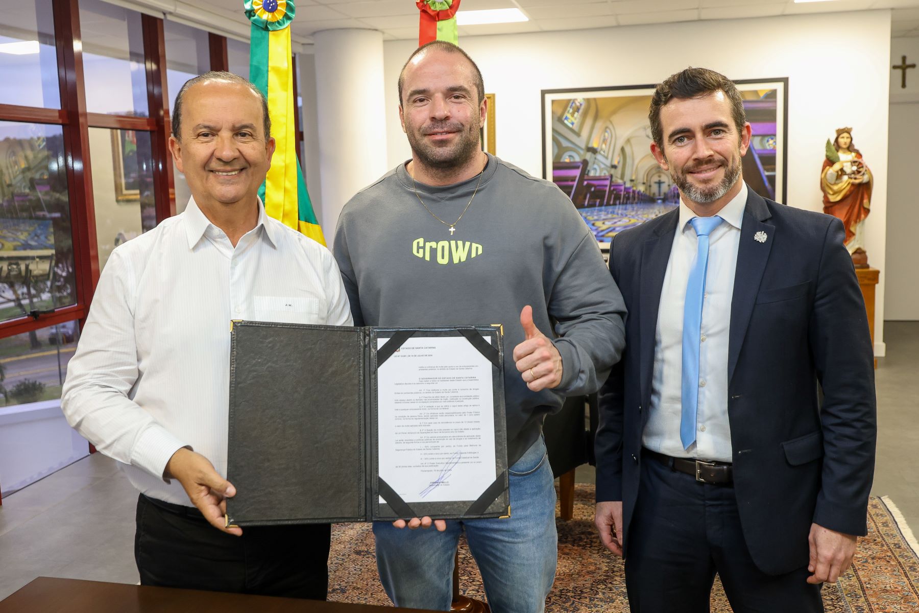 “Essa sanção significa proteção à família. Que a sociedade possa ficar cada vez mais longe de droga e algo que destrua a família. Nós defendemos a vida, a saúde das pessoas e a integridade. Por isso que quem portar droga, entorpecentes em Santa Catarina será multado”, afirmou o governador Jorginho Mello.
