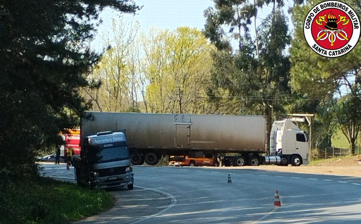 O Corpo de bombeiros atendeu a uma colisão entre três veículos, sendo um caminhão, uma carreta e um automóvel na BR-470 na localidade de Três Serrarias em Curitibanos.