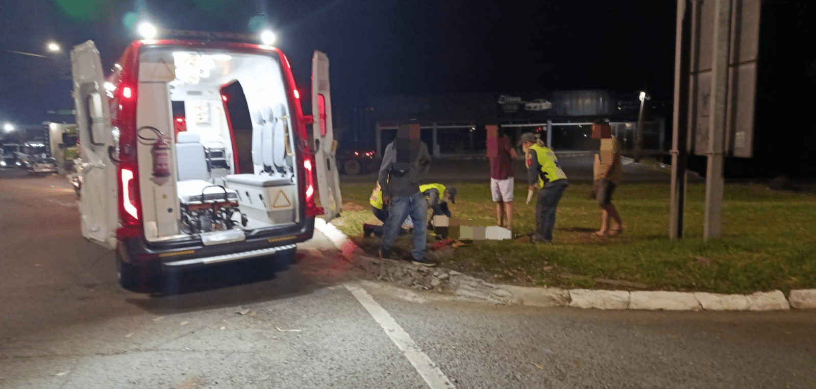 De acordo com os bombeiros, a ocorrência envolveu uma colisão frontal/lateral entre uma moto Honda CG 125 e um automóvel. Ao chegarem ao local, os bombeiros encontraram apenas a moto e seus dois ocupantes, já que segundo relato do motoqueiro, o carro teria fugido do local.