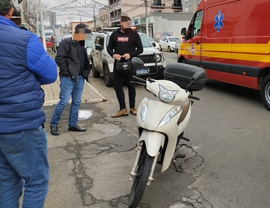 O Corpo de bombeiros atendeu a uma colisão entre um veículo e uma moto na Avenida Salomão Carneiro de Almeida no Centro em Curitibanos.