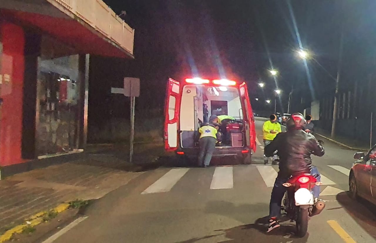 Na noite deste sábado (24), o Corpo de Bombeiros atendeu a uma colisão entre uma moto e carro em Videira.