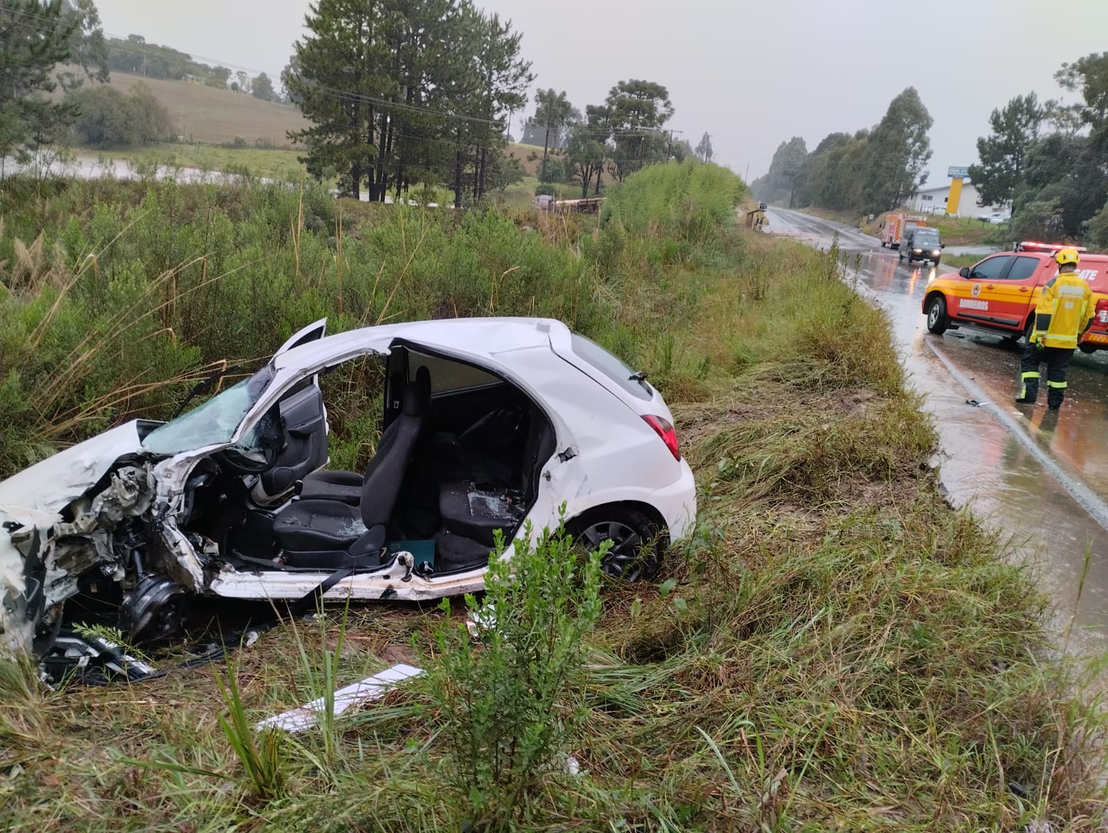 Segundo os bombeiros, foi uma colisão lateral entre o Celta com placas de Lages e a carreta. No carro estava o motorista de 28 anos que ficou preso nas ferragens. A vítima ainda apresentava suspeita de fratura no braço esquerdo e estava com dor abdominal. Após os bombeiros retirarem o homem, o mesmo foi encaminhado a emergência do Hospital Hélio Anjos Ortiz pelo Samu.