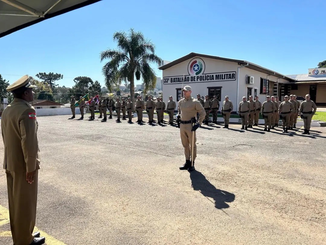 policiais, que servem como exemplos de bravura, profissionalismo e compromisso com a segurança pública. O 33º BPM de Curitibanos parabeniza a todos os policiais militares pela passagem do Dia da PMSC e agradece a cada um pela dedicação e o empenho em servir e proteger a nossa comunidade – Destaca o Tenente Coronel, Givanildo Rodrigues.