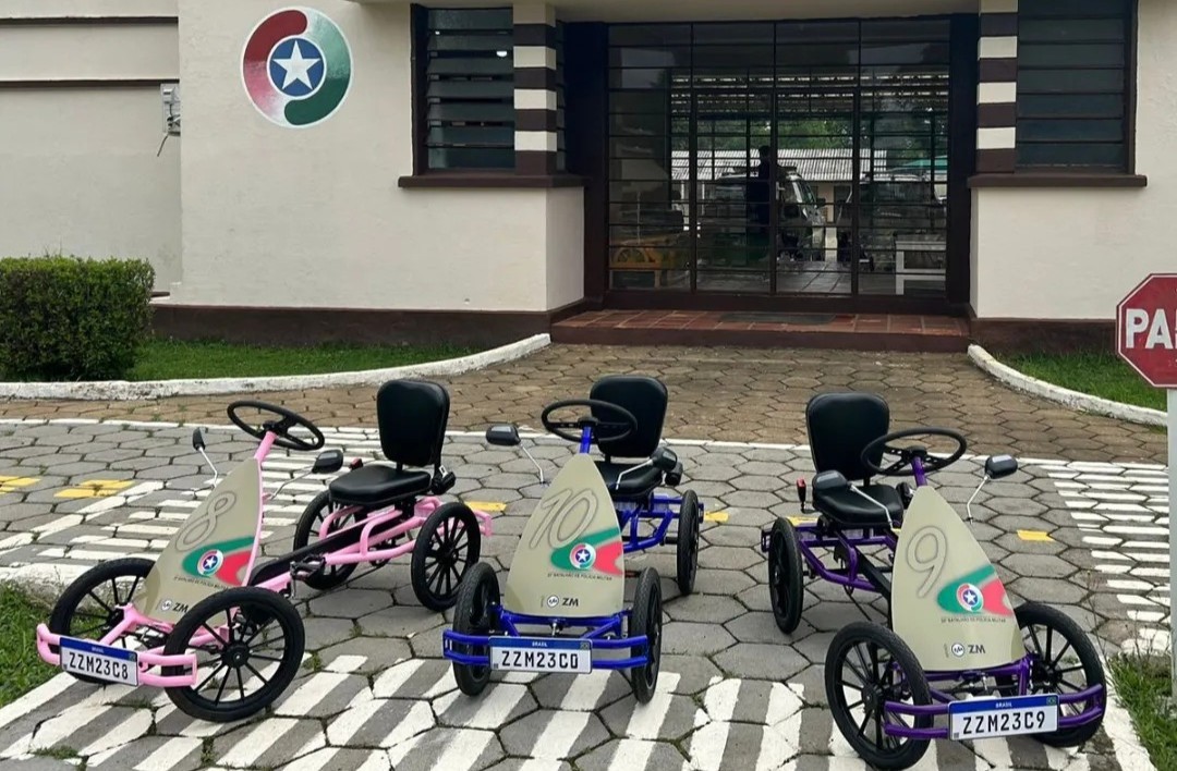 Nesta manhã de quinta-feira (23), o 33º Batalhão de Polícia Militar de Curitibanos recebeu mais três veículos infantis para o programa Transitolândia. Os carrinhos foram doados pela Empresa ZM S/A.