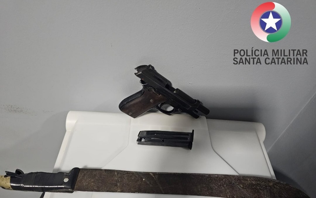 Durante as buscas no imóvel, foi localizado uma pistola calibre 7,65 mm sem munições.