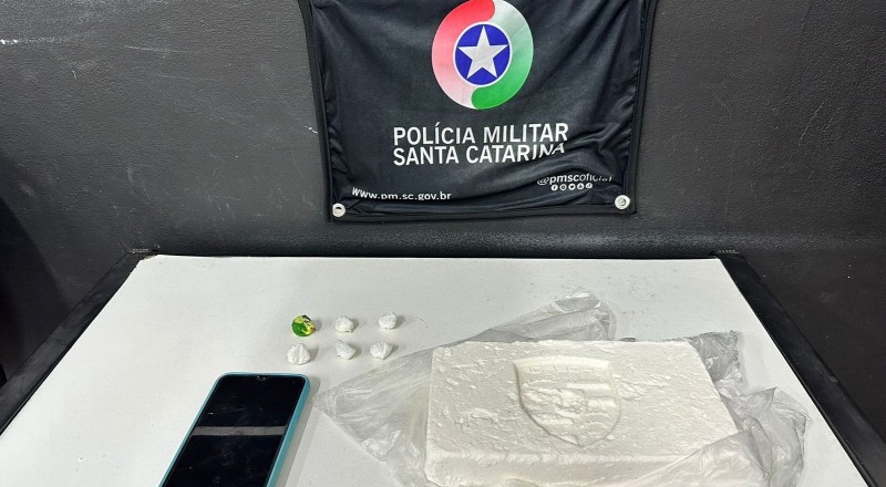 Conforme os registros da PM, o indivíduo de 27 anos já é conhecido como vulgo R7 e por passagens criminais por tráfico de drogas. Foi realizado revista pessoal e localizado um celular Samsung e na revista veicular encontrado dentro do console do veículo uma carteira de cigarro com seis buchas de cocaína embaladas fracionadas e debaixo do banco do motorista uma peça inteira de cocaína pesando aproximadamente um quilo.