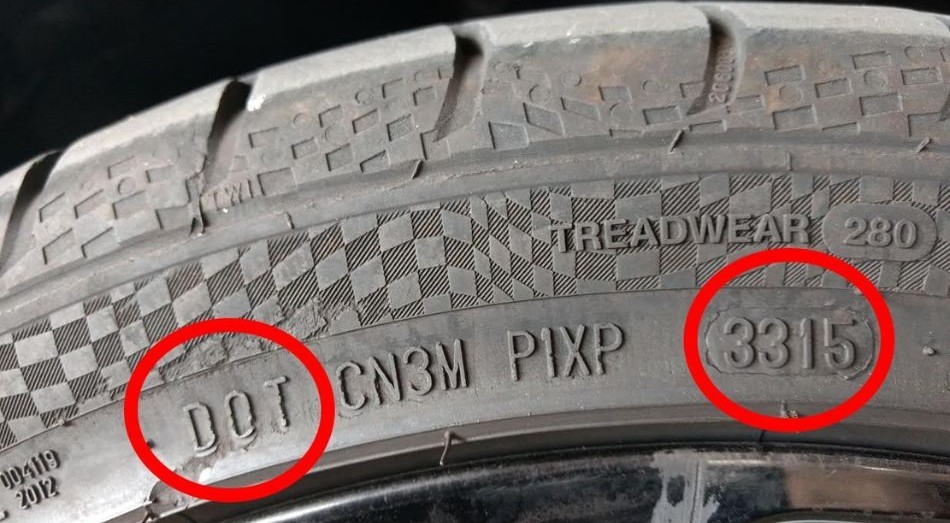 Todo pneu traz inscrito na lateral a sigla DOT, que informa a data em que foi fabricado. É um código com quatro algarismos informando nos dois primeiros dígitos a semana em que foi produzido e nos dois últimos o ano respectivamente.