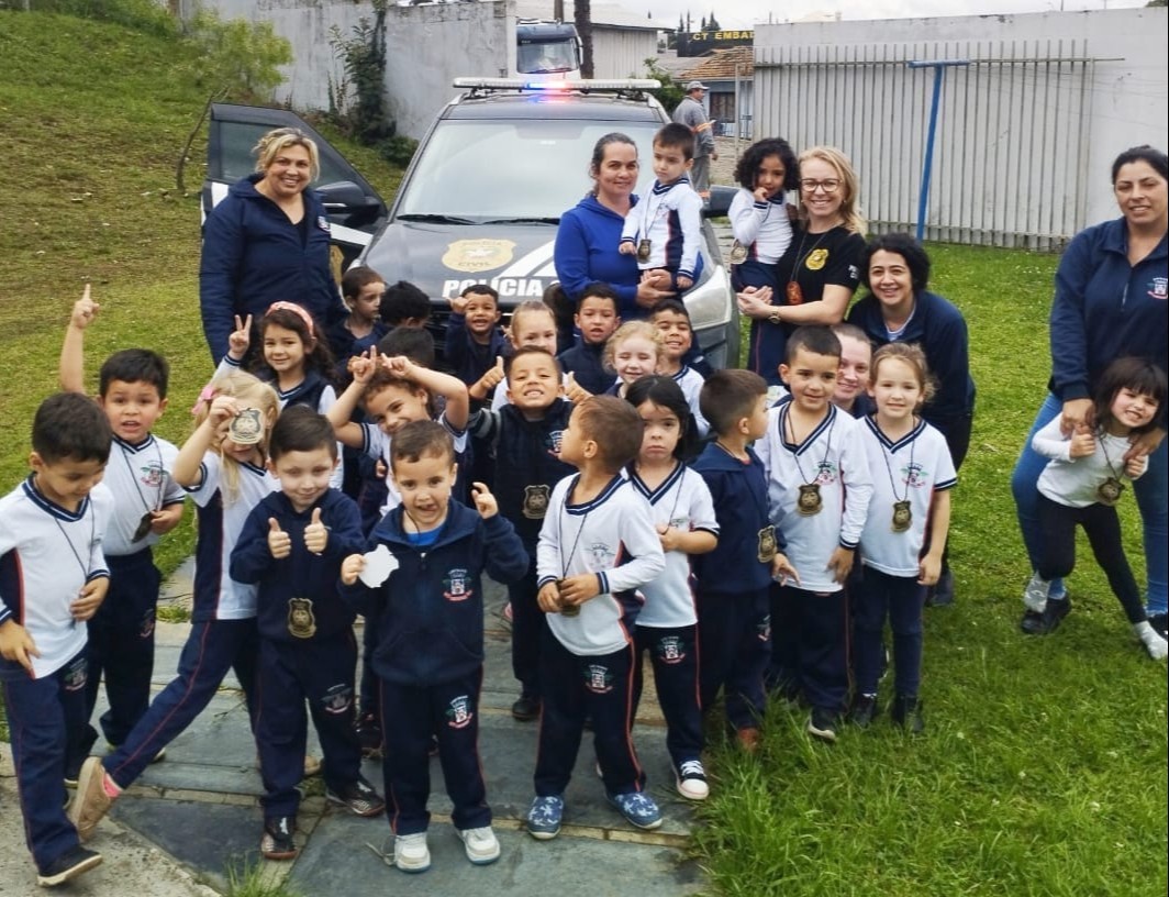 Para finalizar a visita, as crianças conheceram umas das viaturas usadas no dia a dia do trabalho policial e foram convidadas a conhecer as instalações da Delegacia de Polícia.