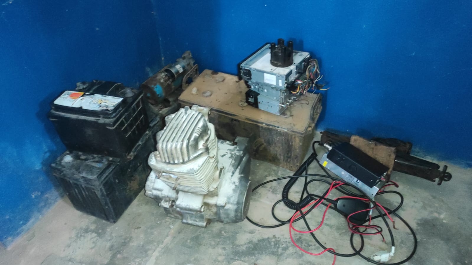 Conforme os registros policiais, na casa que foi alvo das buscas, foi localizado diversos produtos oriundos de furto, dentre eles, baterias automotivas, aparelhos de som, um motor de motocicleta e ferramentas.
