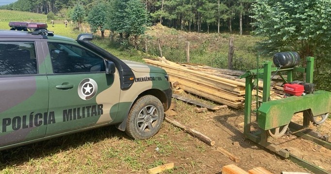 A Polícia Militar Ambienta realizava patrulhamento na Localidade de Faxinal dos Ferreiras no interior do município de São José do Cerrito, quando localizaram madeira nativa serrada e algumas toras de Pinheiro Brasileiro (Araucária Angustifólia) e uma serraria móvel utilizada para o beneficiamento da madeira.