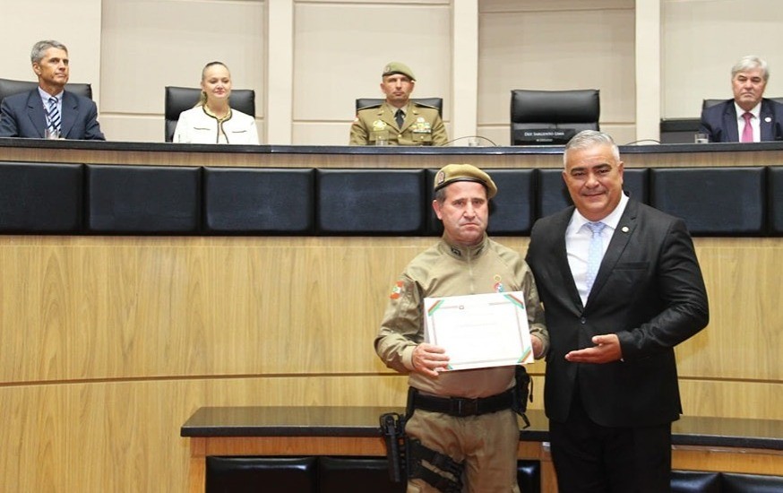 - A Polícia Militar foi criada em Santa Catarina em 1835. A PMSC é uma instituição que trabalha para preservar a vida, preservar o patrimônio do nosso estado. A cada 80% daqueles que resolvem investir em Santa Catarina, investem pelo quesito de segurança. Isso é uma pesquisa recentemente feita. Agradeço o trabalho desempenhado pela corporação destaco que Santa Catarina como o estado mais seguro do país - Pontuou o Deputado, Sargento Lima.