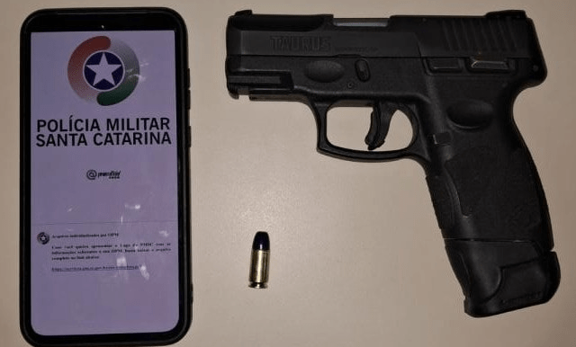 Em uma ação imediata, os policiais militares conseguiram abordar o veículo e durante a busca, uma pistola calibre 9 mm foi encontrada sobre o painel.