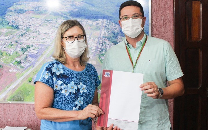 Prefeita Ilse Amélia Leobet fez a entrega de um ofício pedindo o aumento de policiais. Foto: Divulgação.