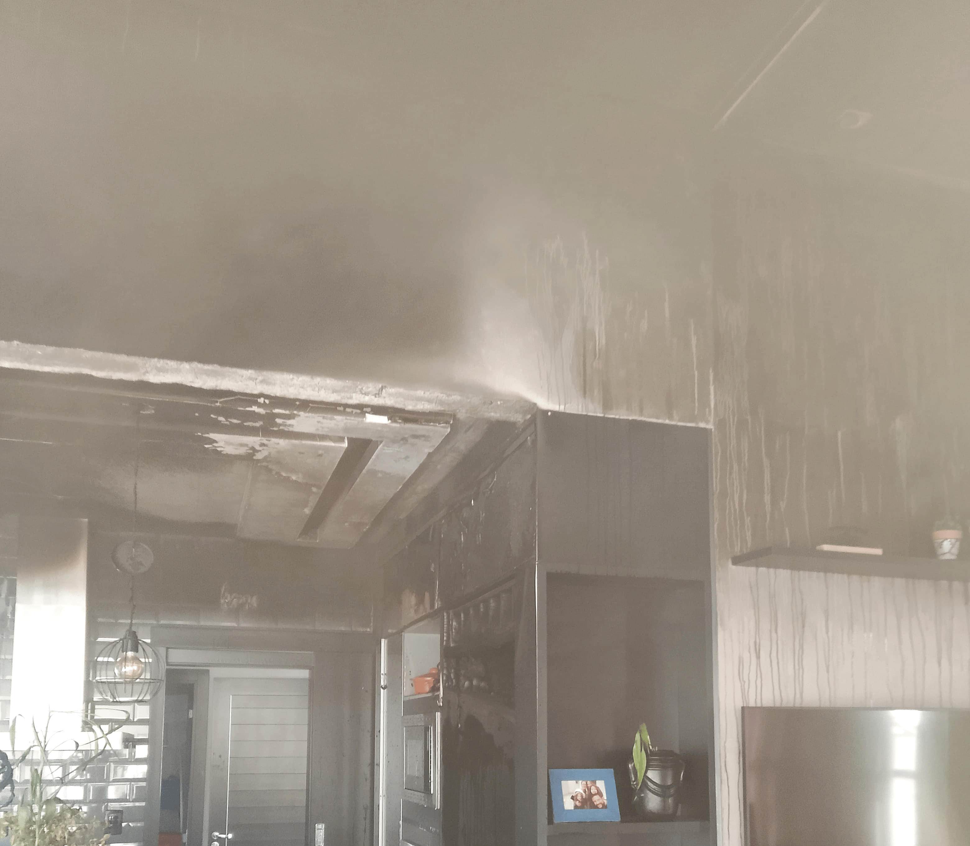 Conforme os registros dos bombeiros, após o início do fogo no equipamento causou a queima da parede e danos no forro de gesso.