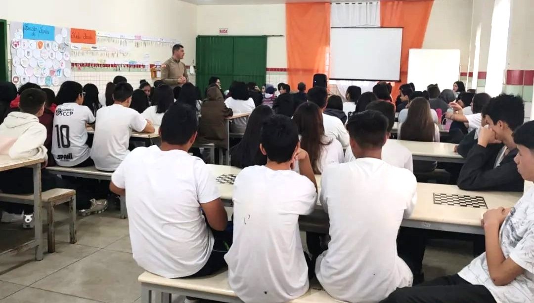 Na última sexta-feira (18), a Polícia Militar realizou uma palestra sobre “violência" na E.E.B. Dep. Altir Weber de Mello no bairro Bom Jesus para os alunos do 6º ao 9º ano do ensino fundamental e alunos do ensino médio.