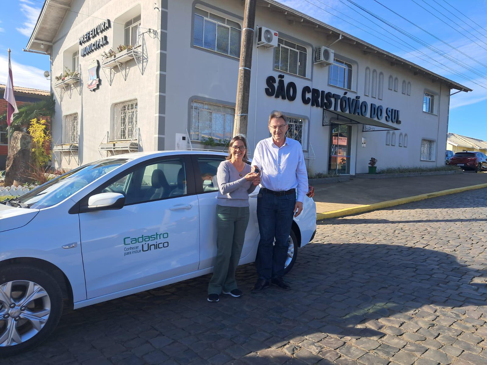 Na última semana, a Secretaria de Assistência Social do município de São Cristóvão do Sul foi contemplado com um veículo Ônix LTZ Sedan zero quilômetro, o automóvel foi adquirido com recurso do Governo Federal, através do Índice de Gestão Descentralizada do Programa Bolsa Família e Cadastro Único (IGD- PBF) no valor de R$ 120 mil. A entrega oficial do Ônix LTZ Sedan foi realizada pelo prefeito Jaime Cesca e pelo vice-prefeito Jucerlei Negrini (Chiquinho).